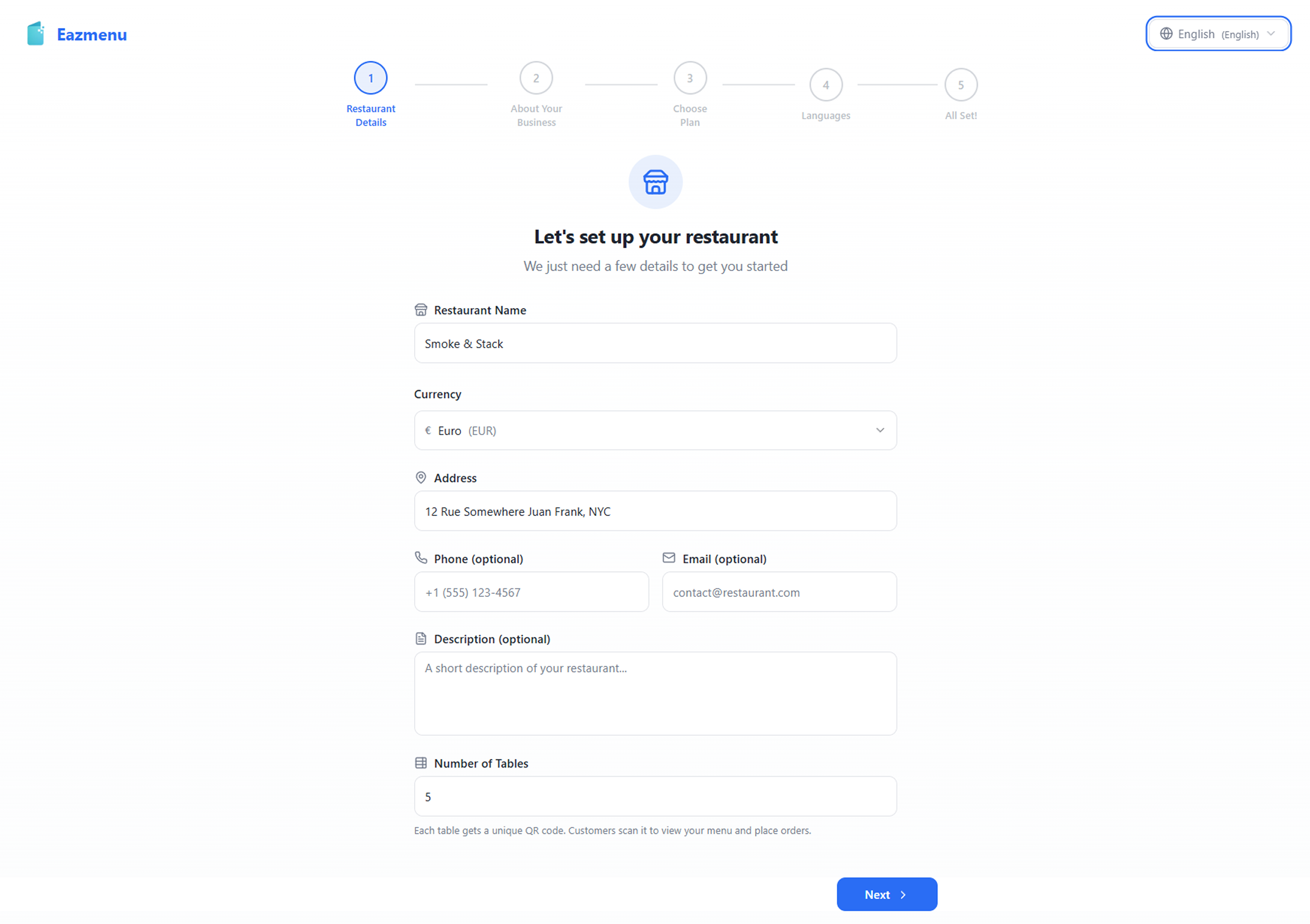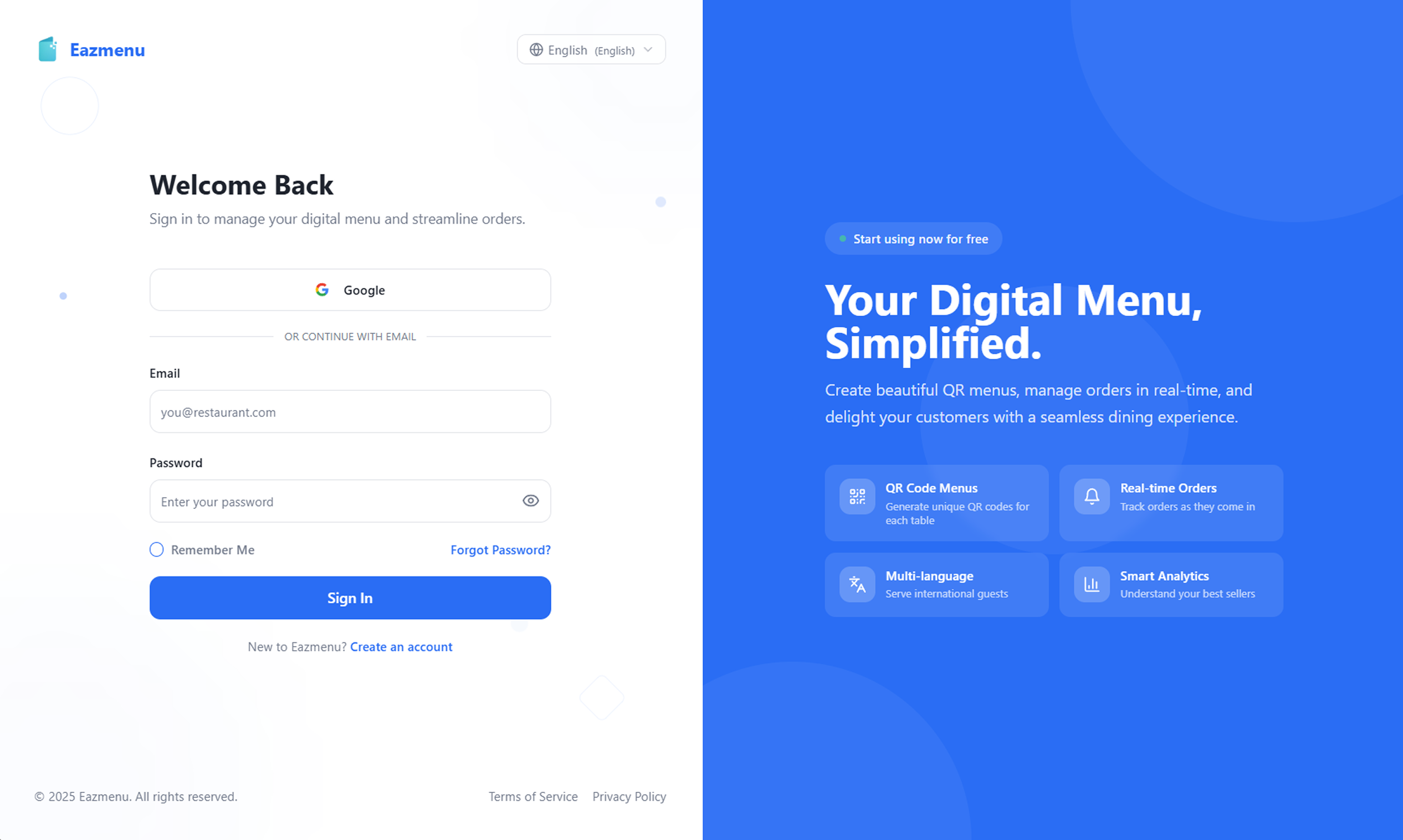 Eazmenu gives restaurants a practical digital ordering stack that works at table level, supports multilingual menus, and keeps staff in sync in real time.